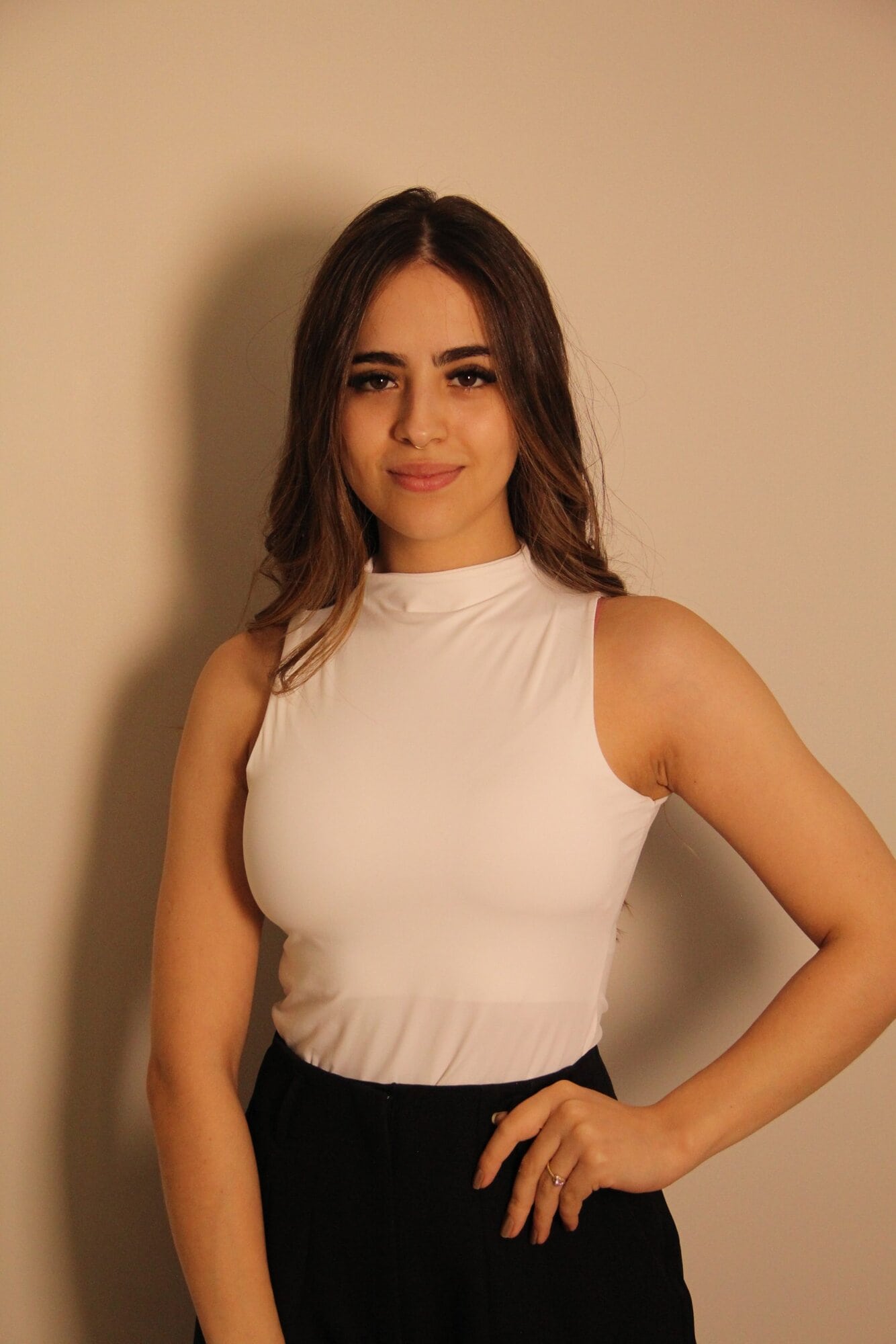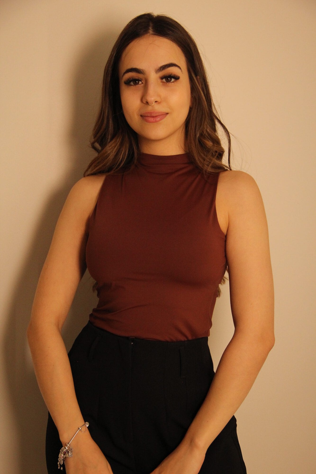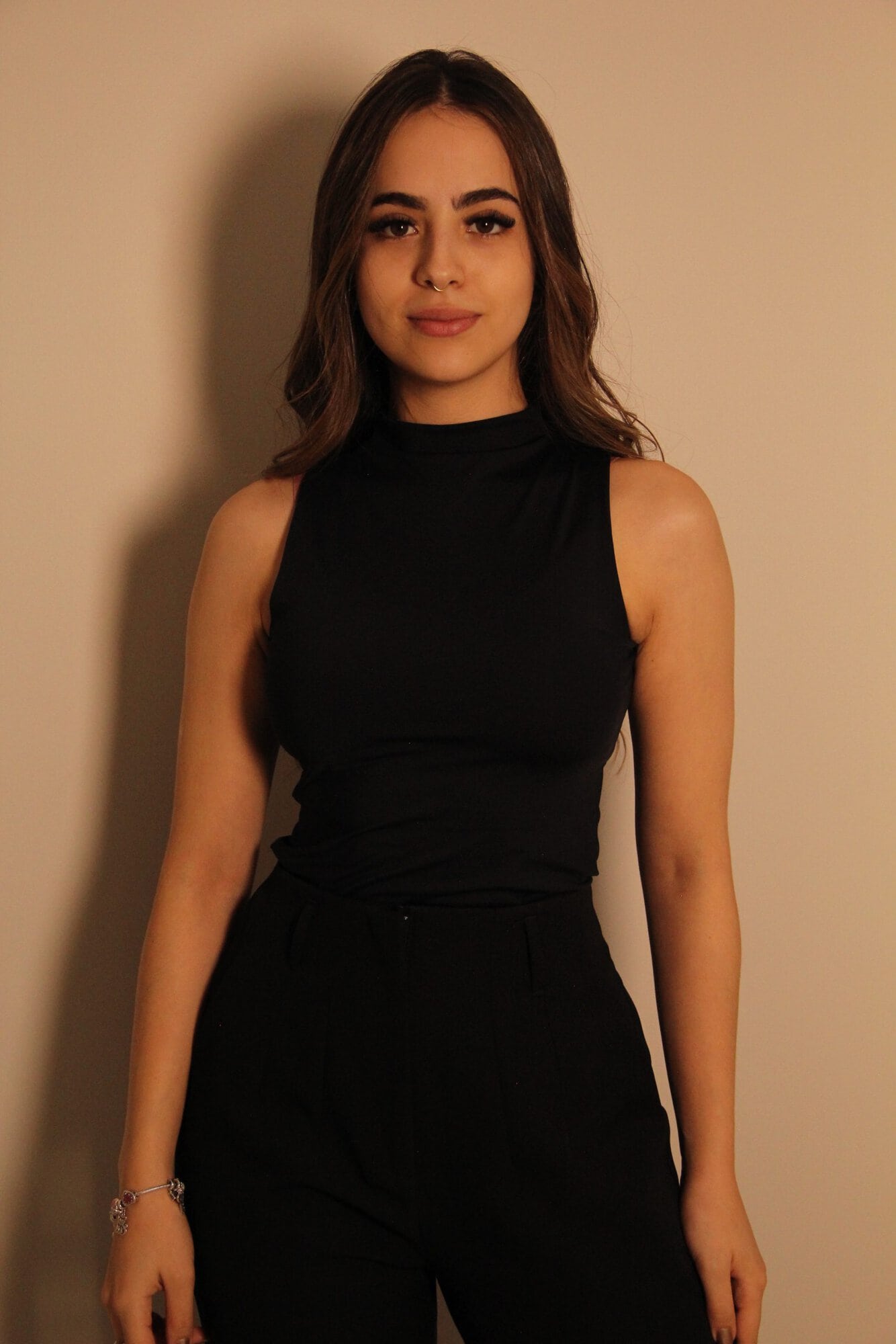 DESCRIÇÃO: O body das imagens é confeccionado em poliamida, um tecido conhecido por sua elasticidade, maleabilidade e toque macio, proporcionando um caimento perfeito ao corpo. Ele possui um design minimalista e elegante, com gola alta e modelagem justa, valorizando a silhueta. Sem mangas, oferece um visual moderno e versátil, ideal para diversas combinações. Além disso, conta com fechamento por botões de pressão na parte inferior, garantindo praticidade ao vestir.